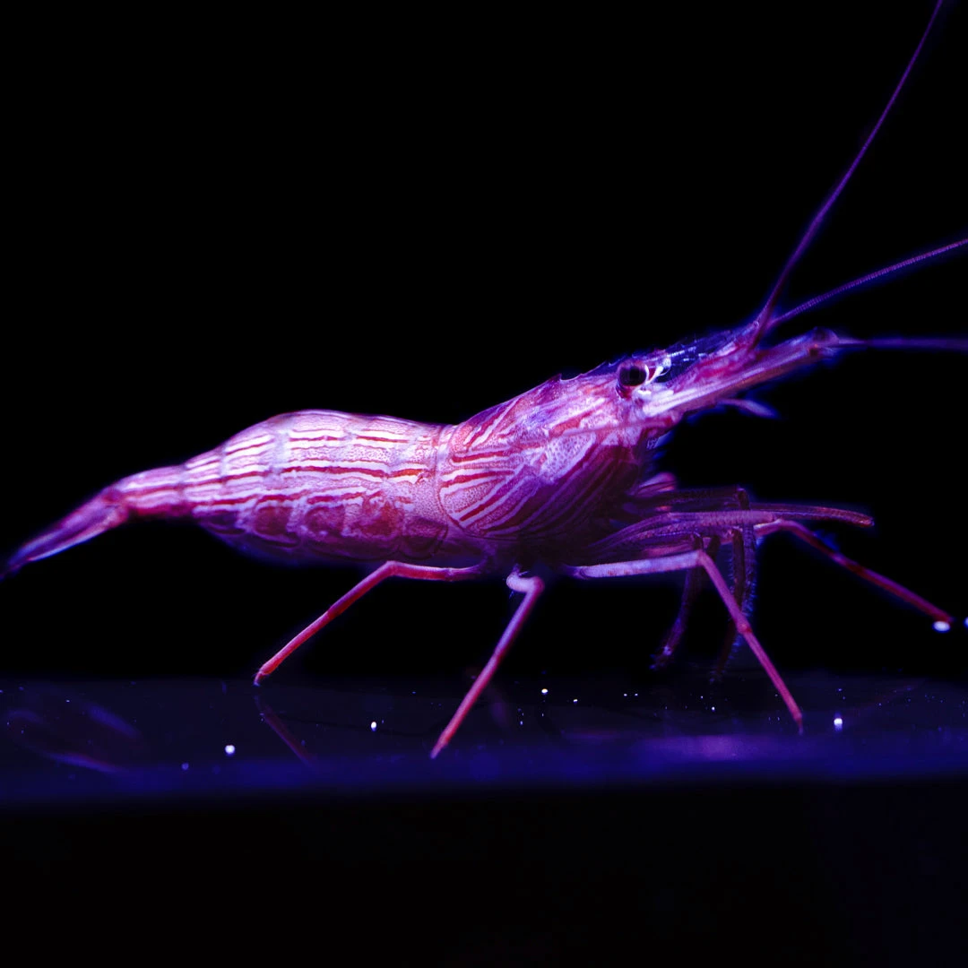 The Peppermint Shrimp, is a vibrant member of the *saltwater aquarium community. Their striking appearance, characterized by a translucent body with bold red stripes, adds a splash of color and activity to any tank. Known for their peaceful nature, Peppermint Shrimps are sociable creatures that harmoniously coexist with a variety of reef inhabitants.Â
